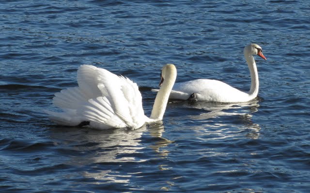 Гуси плавают парами